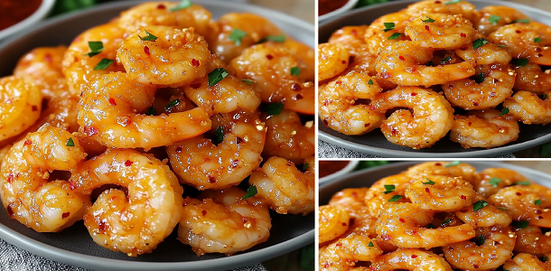- Coloca los camarones fritos en un bol grande y vierte la salsa sobre ellos. Revuelve suavemente para asegurarte de que los camarones queden bien cubiertos con la salsa.