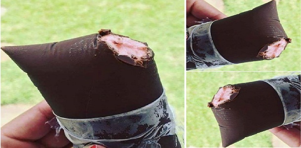Con una boquilla o cuchara misma, llene una bolsita de helado con chocolate derretido hasta aproximadamente 2 dedos, da 20g de chocolate para cada heladito, aproximadamente. Apriete la bolsita y separe el chocolate hasta casi el final, dejando sin chocolate sólo la parte que dará el nudo. Toma la mezcla del relleno y usando un embudo llene la bolsita que ya está con chocolate.