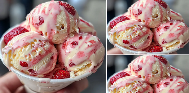 3. Helado de fresa con trozos de chocolate blanco: Añade pequeños trozos de chocolate blanco en los últimos minutos del batido en la máquina de helados.