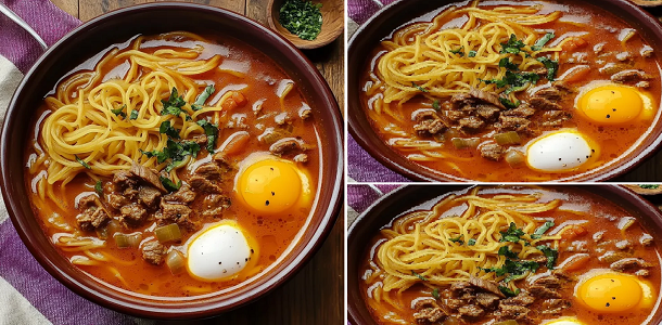 2. Después de que la sopa vuelva a hervir lentamente, agrega los huevos, dejando que se cocinen ligeramente para mantener su textura.